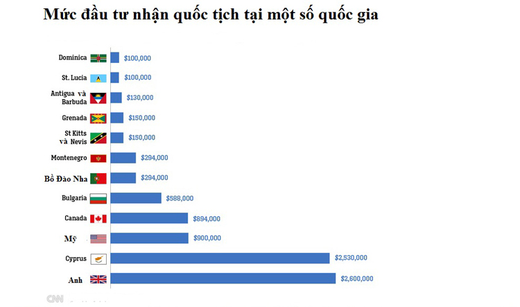 Kênh CNN (Mỹ) ngày 8/8 đưa tin rằng giới siêu giàu trên thế giới đang tập trung vào chương trình đầu tư nhận quốc tịch (CIP) còn được biết đến với cái tên “thị thực vàng”. Theo đó, các cá nhân có năng lực tài chính sẽ đầu tư mạnh vào một quốc gia khác để được ưu đãi nhập quốc tịch.