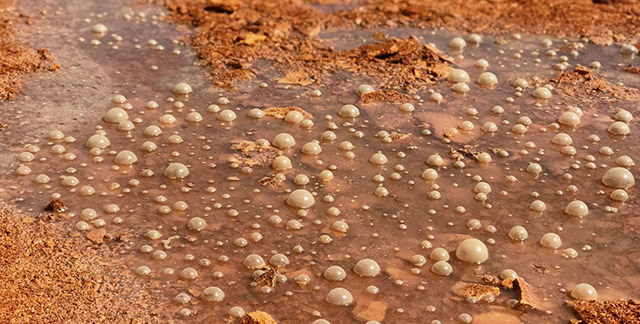 Lưu huỳnh chứa trong nước suối vượt xa mức bình thường, không chỉ đủ để đe dọa tính mạng mà còn có khả năng ăn mòn đá xung quanh. Dưới sự bào mòn của nước suối qua năm tháng, những tảng đá màu nâu đỏ xung quanh tưởng như cứng, nhưng thực chất lại rất mềm, nếu không cẩn thận, bạn có thể chìm xuống đó, chẳng khác gì đầm lầy.