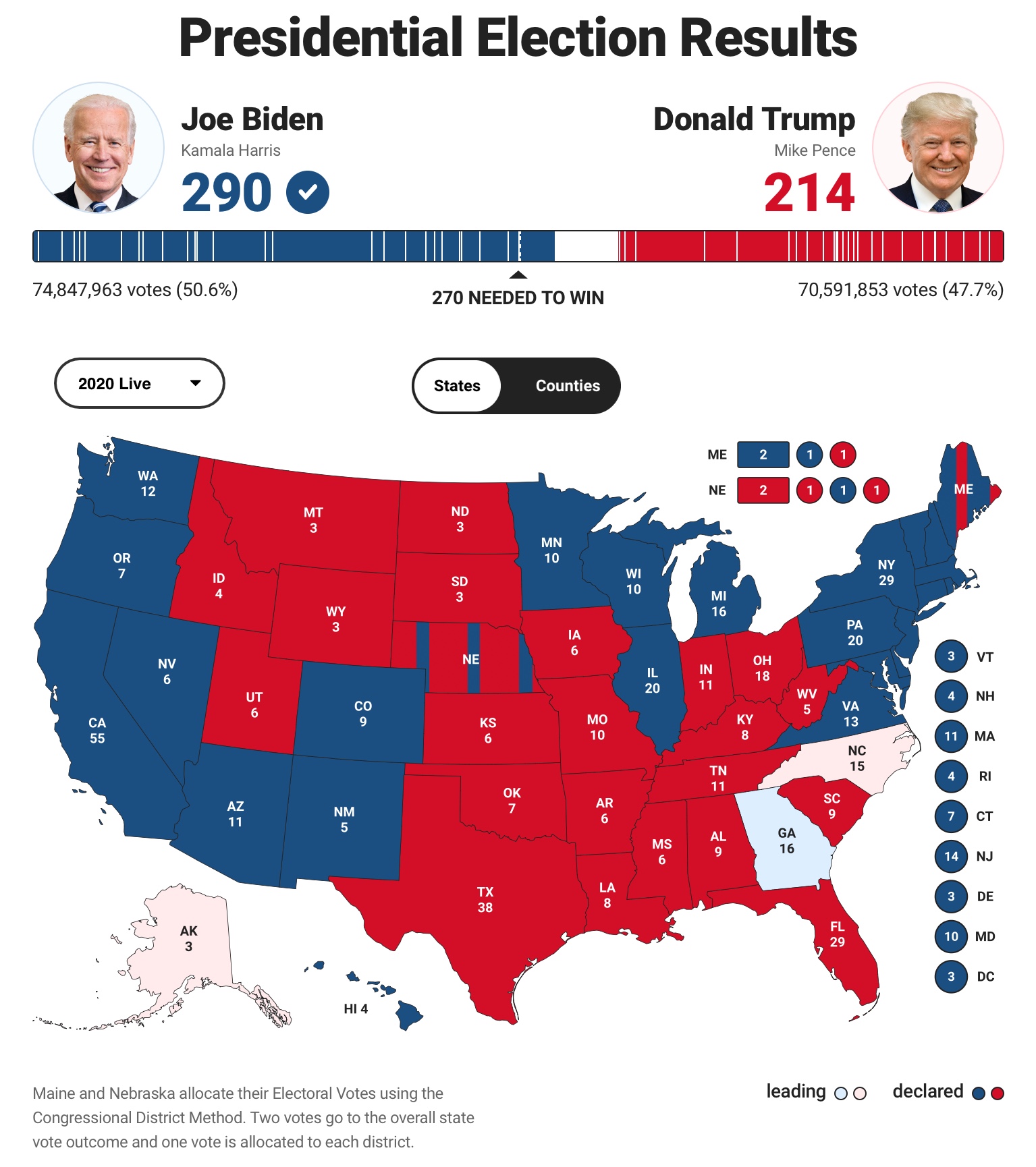 Joe Biden wins Pennsylvania and the presidency, securing more than 270 electoral votes