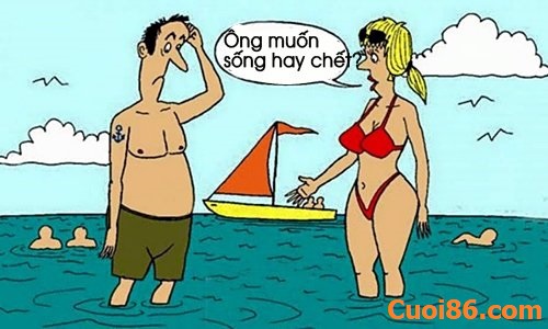 Ông khách du lịch đang đi dạo ven biển, bỗng thấy nơi này không có một bóng người. Ông liền cởi hết quần áo, để lại trên bờ rồi xuống biển tắm.