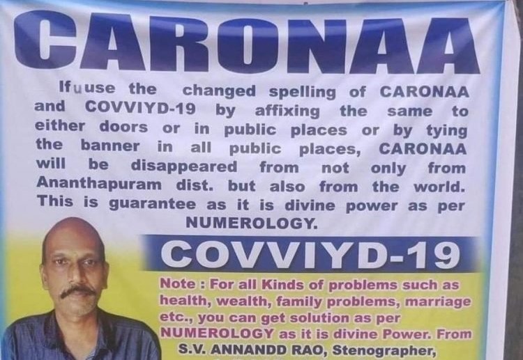 SV Annandd Rao - một người chuyên viết tốc ký và tin vào sức mạnh của thần số học, sống tại quận Ananthapuram, bang Andrash Pradesh, Ấn Độ - tin rằng chỉ cần đánh vần sai từ “COVID-19” và “Corona” cũng có thể loại bỏ dịch bệnh không chỉ ở quê hương ông mà còn trên toàn thế giới.