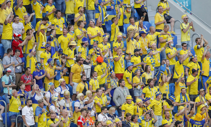 Cổ động viên Thụy Điển trong trận đấu với Ba Lan tại sân vận động Saint Petersburg, Nga hôm 23/6. Ảnh: AFP.