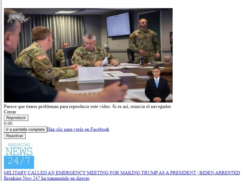 "MILITARY CALLED AN EMERGENCY MEETING FOR MAKING TRUMP AS A PRESIDENT | BIDEN ARRESTED," reads the title and caption of the video, which was published by a page called Breaking New 247.
