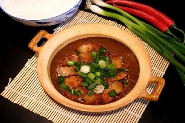 Nguyên liệu: 300g thịt ba rọi, 4 củ hành tím, tỏi, ớt, tiêu xay, hạt nêm, nước mắm, muối, đườngHành lá và rau ngòNồi đất hoặc nồi sứ loại chuyên dùng để kho thịt