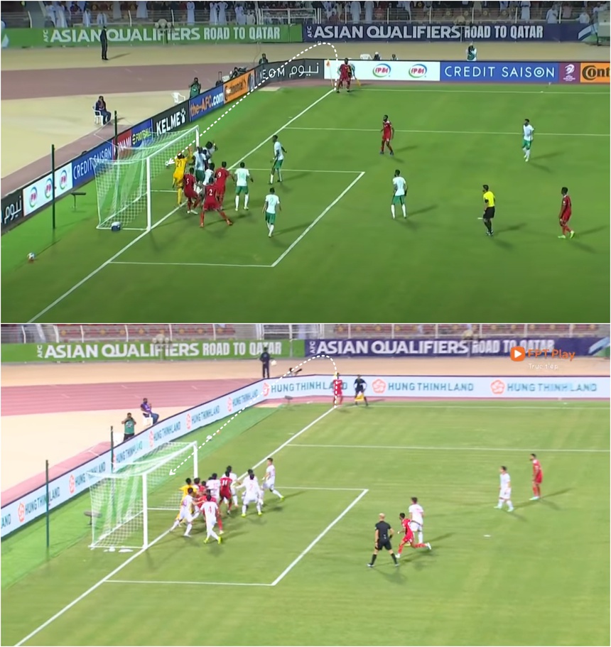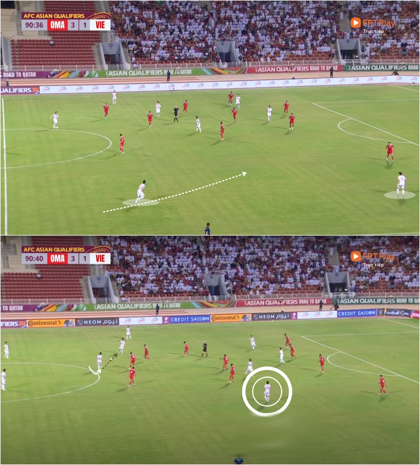 Australia và Saudi Arabia đều đã khai thác thành công điểm yếu này. Họ chủ động luân chuyển bóng sang một bên và tìm những đường chuyền chéo dài để bẻ gãy áp lực của Oman, từ đó tiến vào vòng cấm địa.
