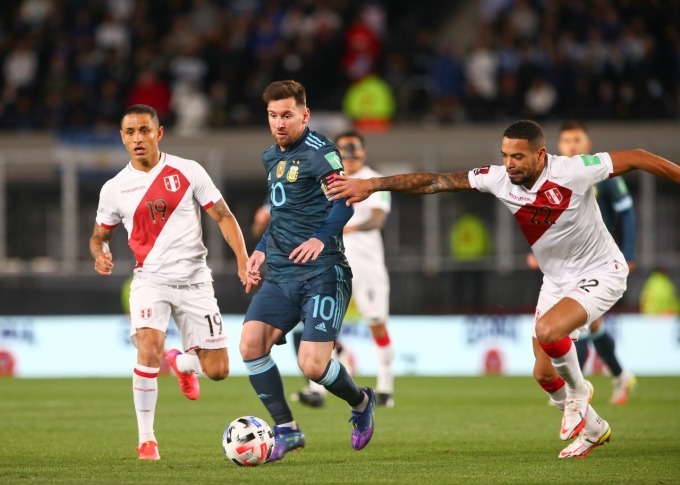 Messi trong một tình huống qua người ở trận Argentina - Peru trên sân El Monumental, Buenos Aires hôm 14/10. Ảnh: AFA
