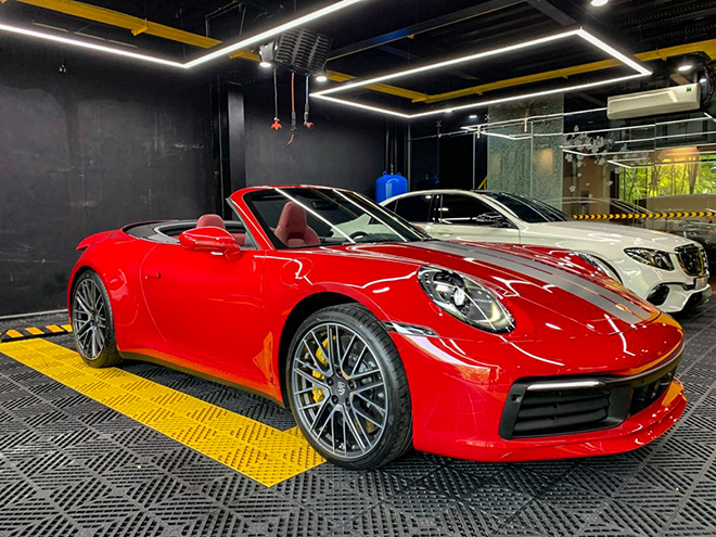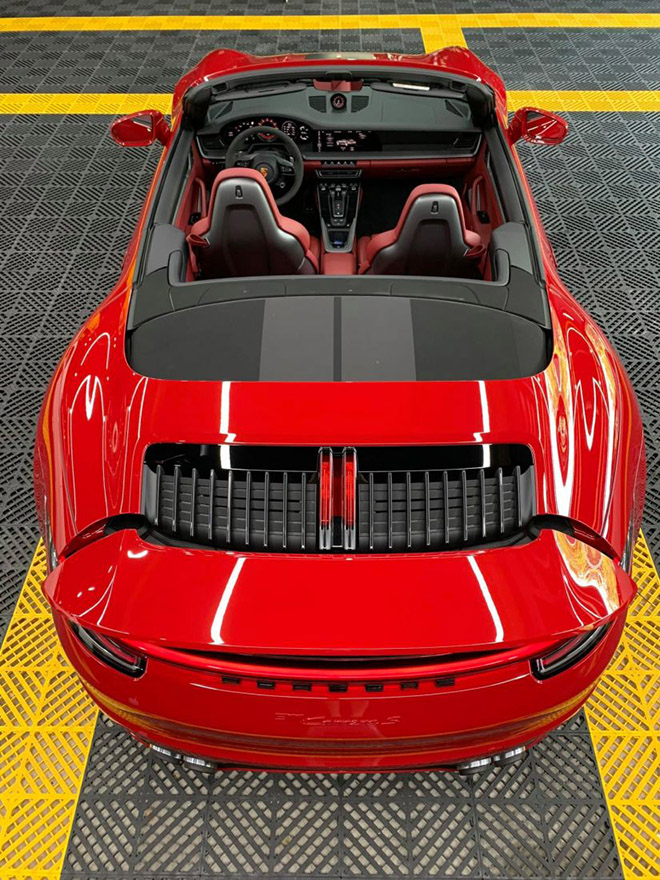 Chiếc Porsche 911 Carrera S Cabriolet thứ hai tại Việt Nam mang màu sơn đỏ tươi, được thương hiệu xe thể thao đến từ Đức gọi là Guards Red. Đây là màu sơn tiêu chuẩn của Carrera S và khách hàng sẽ không tốn tiền khi chọn màu sơn này.