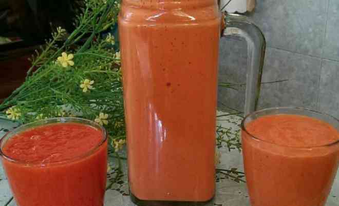 Sinh tố gấc hay sữa gấc làm từ những quả gấc tươi uống rất ngon. Ảnh minh họa.