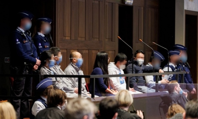 Các nghi phạm trong vụ án 39 người Việt tử vong trên xe tải trong phiên tòa tại Bruges, Bỉ, hôm 19/1. Ảnh: AFP
