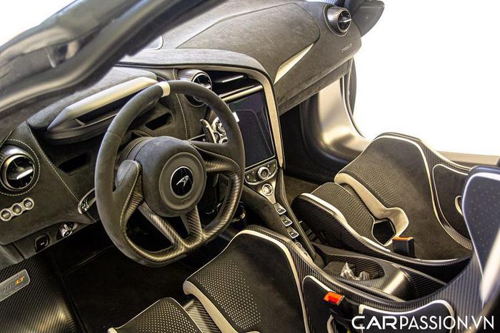 Chi tiết này góp phần đem tới cảm giác ngồi thể thao hơn cho người cầm lái cũng như hành khách. Phía sau tựa đầu ghế còn được lắp đặt khung an toàn với logo MSO màu đen. Với bộ ghế đua này, 765LT đã giảm được khoảng 18 kg so với 720S với trang bị ghế thông thường. Ngoài ra, các chi tiết như thiết kế bảng điều khiển, các màn hình hầu như không có sự khác biệt so với McLaren 720S.