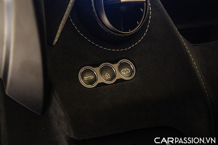 Về nội thất, chiếc 765LT màu Nardo Orange độc nhất Việt Nam được bọc da Alcantara màu đen cùng các chi tiết trang trí bọc da Alcantara màu trắng xám. Khoang nội thất của xe sở hữu hàng loạt chi tiết carbon như ốp cửa gió điều hòa, ốp vô lăng, hai bên ốp cửa cùng bộ ghế đua carbon cực mỏng.