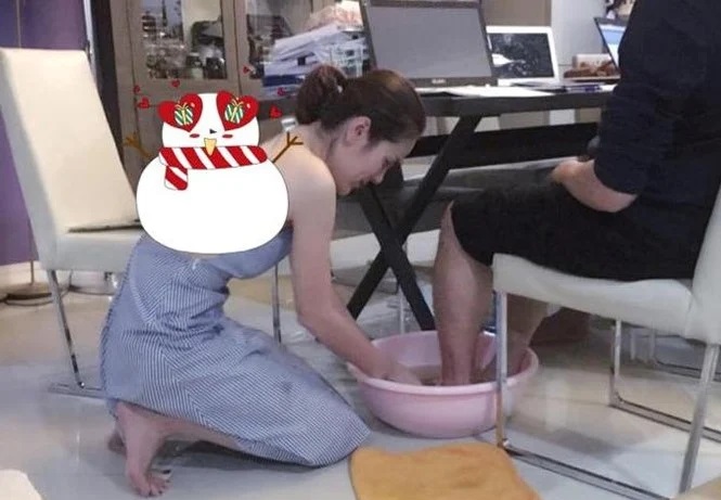 Khoảnh khắc Phương Lê quỳ gối rửa chân cho chồng khiến nhiều người chú ý (Ảnh: Internet)