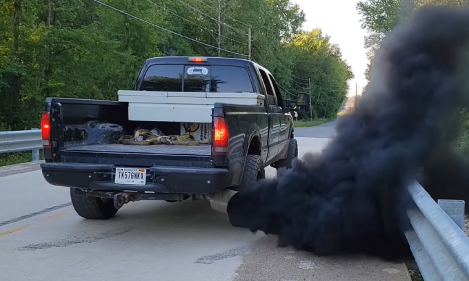 Nhưng trong video dưới đây, có thể thấy chiếc bán tải lắp thiết bị này khiến xe thải ra một lượng lớn khói đen và muội than - đặc trưng của việc nhiên liệu không được đốt cháy hết.