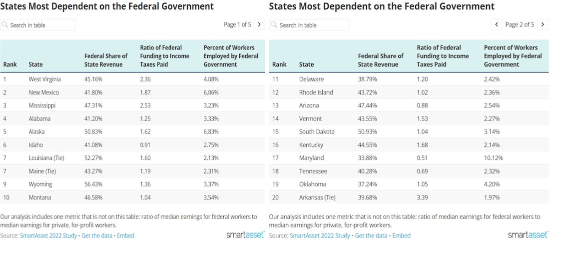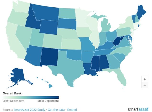 This is SmartAsset’s third annual study on the states most dependent on the federal government.