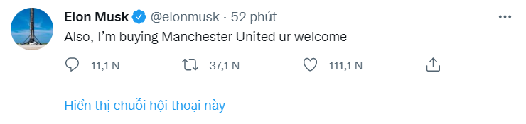 Musk được biết đến là người thường xuyên đăng lên Twitter những thông điệp gây tranh cãi. Vì thế, Reuters nhận định không rõ liệu ông có muốn mua MU hay đang trong quá trình đàm phán thật hay không.