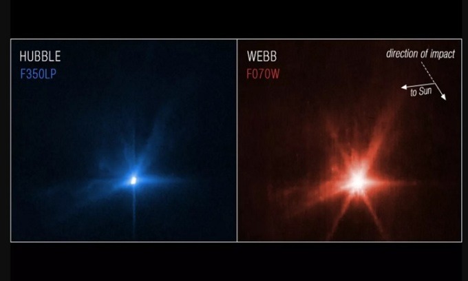 Kính James Webb và Hubble cùng chụp ảnh tàu DART đâm vào Dimorphos. Ảnh: NASA