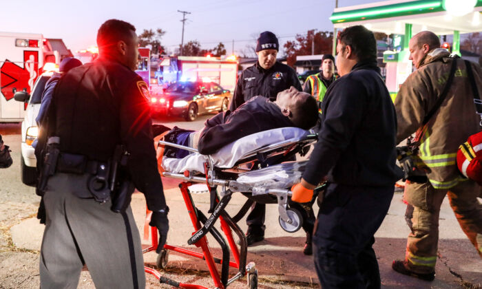 Cảnh sát trưởng Quận Montgomery và nhân viên ứng phó khẩn cấp với một trường hợp nghi ngờ dùng ma túy quá liều trong một bãi đậu xe của một trạm xăng ở Thị trấn Harrison của Dayton, Ohio, vào ngày 01/11/2019. (Ảnh: Charlotte Cuthbertson/The Epoch Times)