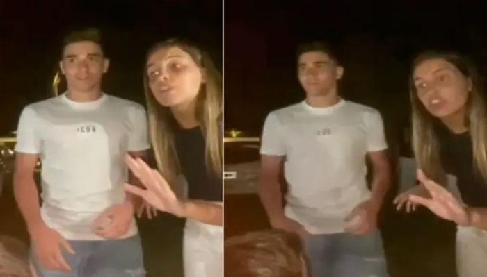 Mạng xã hội lan truyền khoảnh khắc Emilia Ferrero để nhóm học sinh chụp hình nhưng lại không cho xin chữ ký của bạn trai Julian Alvarez. Ở phía sau, tiền đạo người Argentina tỏ rõ sự lúng túng.