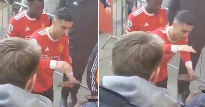Hình ảnh chụp lại từ camera cho thấy Ronaldo đập vào tay cậu bé Jacob. Ảnh: GETTY.