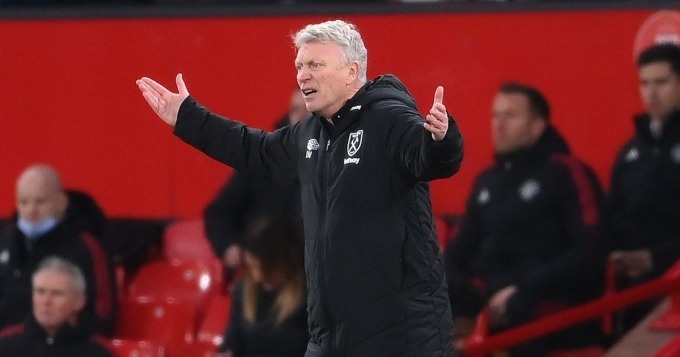 HLV Moyes chỉ đạo West Ham ở trận đấu tại Ngoại hạng Anh mùa này trên sân Old Trafford. Ảnh: MEN.