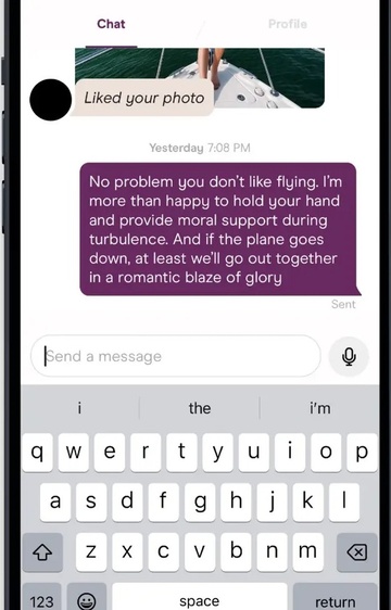 Khi một người nhắn cho Jordan rằng nỗi sợ phi lý nhất của anh ta là đi máy bay, cô đưa tin nhắn này cho chatbot và yêu cầu nó đưa ra một câu trả lời hài hước. "Không sao, tôi rất vui khi được nắm tay bạn và hỗ trợ tinh thần trong lúc hỗn loạn, và nếu máy bay gặp sự cố, ít nhất chúng ta sẽ đi chơi cùng nhau trong ánh hào quang lãng mạn!" là câu trả lời từ ChatGPT.