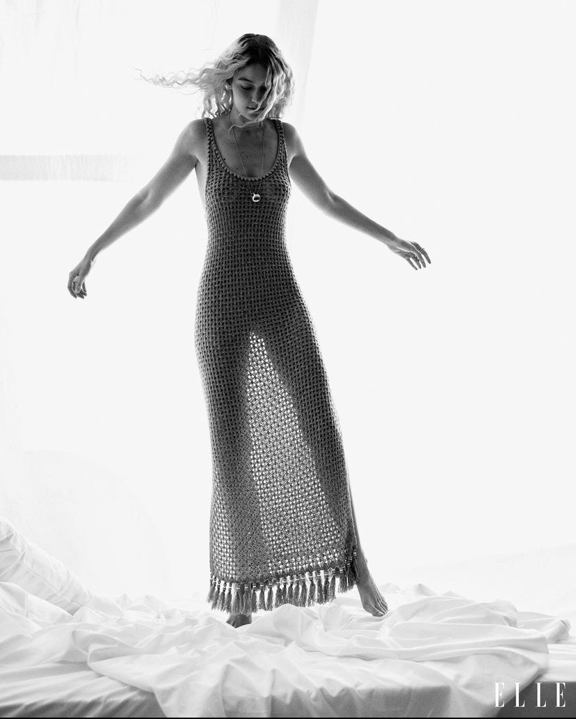 Gigi Hadid khoe đường cong cơ thể trong trang phục lưới, dệt kim trên trang bìa Elle. Ảnh: @elleusa.