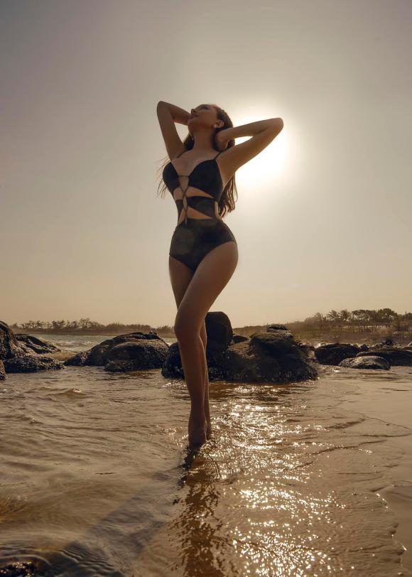 Trong ảnh, Lâm Khánh Chi diện đồ tắm tông đen với những đường cut out cực táo bạo. Ở tuổi 45, Lâm Khánh Chi vẫn sở hữu hình thể thon thả săn chắc không thua kém thiếu nữ tuổi đôi mươi.