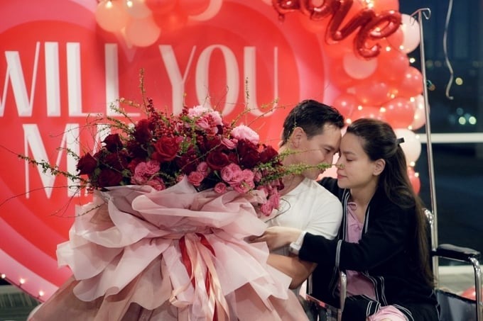 Cụ thể, khoảng 18h ngày 6/11/2020, Hồ Ngọc Hà được Kim Lý đẩy xe lăn đến phòng tập trị liệu sau ca sinh mổ. Đi cùng họ là một số nữ y tá. Thời điểm đó, nữ ca sĩ không biết rằng mình sắp bị 'lừa' tham gia một màn cầu hôn được chuẩn bị sẵn. Lúc đó, Hồ Ngọc Hà không khỏi xúc động khi nhìn thấy trước mặt mình là một không gian tràn ngập bong bóng, backdrop in dòng chữ 'Em sẽ cưới anh nhé?', cùng tiếng đàn violin ca khúc "Cả một trời thương nhớ" - ca khúc cả hai lần đầu hợp tác và được xem là sợi dây se duyên tình cảm của hai người.