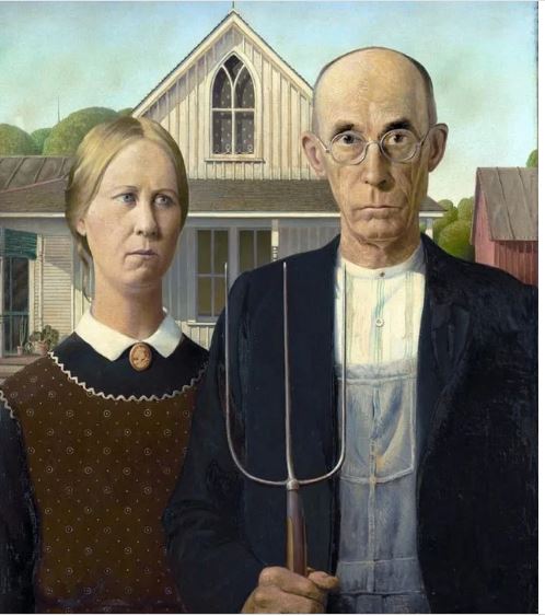Bức tranh “Cặp tình nhân hài hước” của nghệ sĩ Grant Wood được lấy cảm hứng từ cuộc sống tại vùng nông thôn Iowa. Tuy nhiên, cặp đôi trong tranh không phải là một cặp vợ chồng mà là một cha và con gái. Em gái của Wood đã được mời để làm mẫu cho tranh, và Wood yêu cầu cô mặc một chiếc tạp dề như những cô gái trong vùng đó.