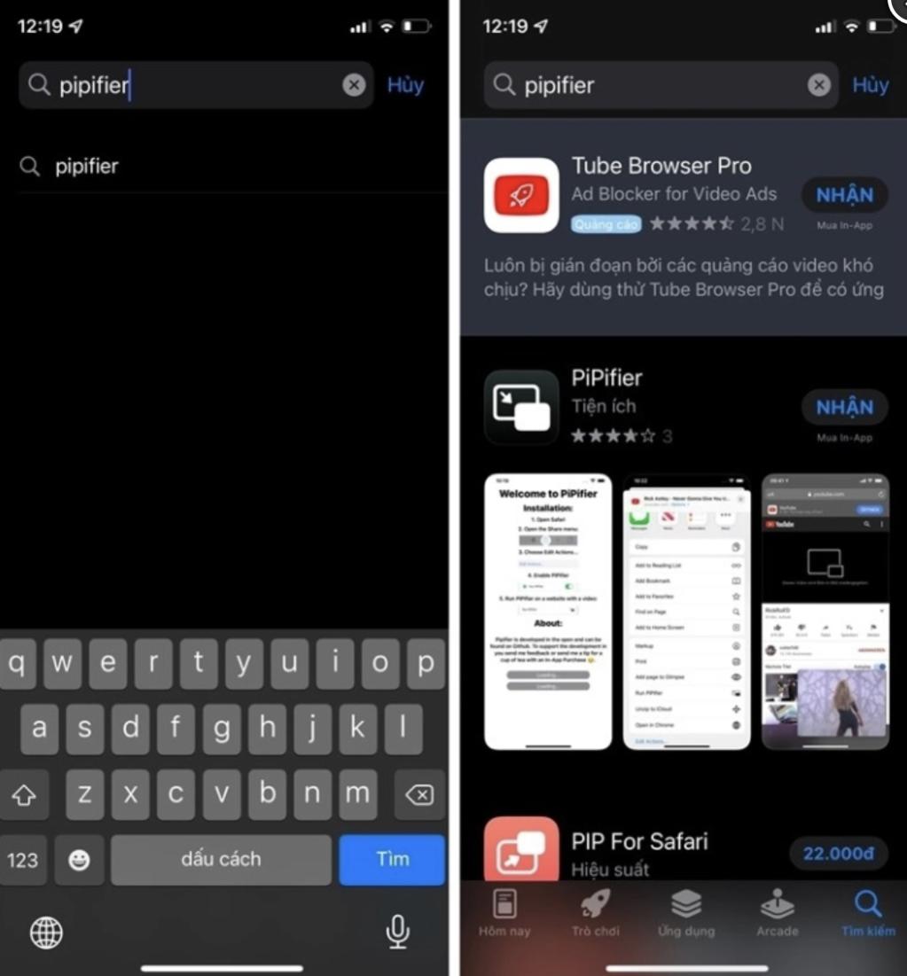 Bước 1: Để sử dụng được tiện ích này trên Safari thì bạn cần phải có ứng dụng PiPifier, các bạn có thể vào App Store và tìm từ khóa PiPifier tải về và cài đặt ứng dụng.