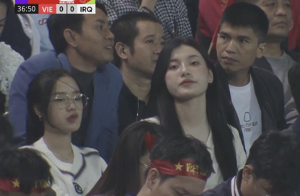 Theo đó, vào phút 36 của trận đấu, ống kính máy quay lia về phía khán đài, màn hình liền xuất hiện hình ảnh cô gái với gương mặt xinh đẹp, khả ái làn da trắng muốn phát sáng.