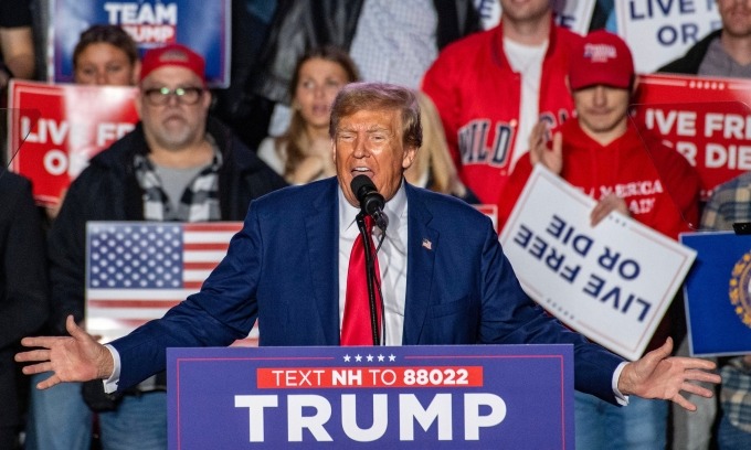Cựu tổng thống Mỹ Trump tại cuộc mít tinh vận động tranh cử ở New Hampshire tháng 12/2023. Ảnh: AFP