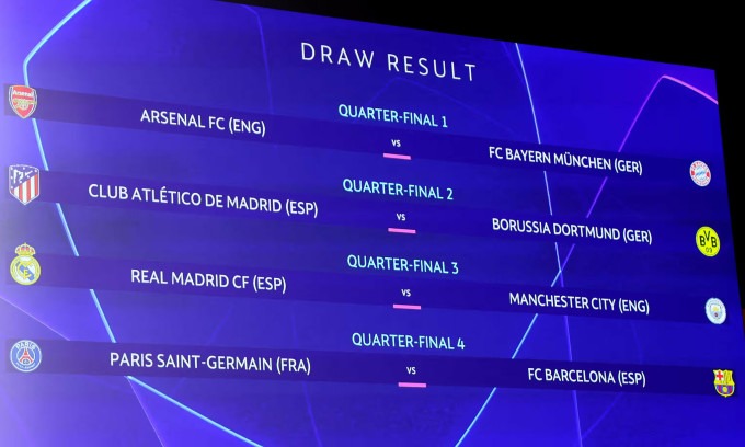 Kết quả chia cặp tứ kết Champions League. Ảnh: Reuters