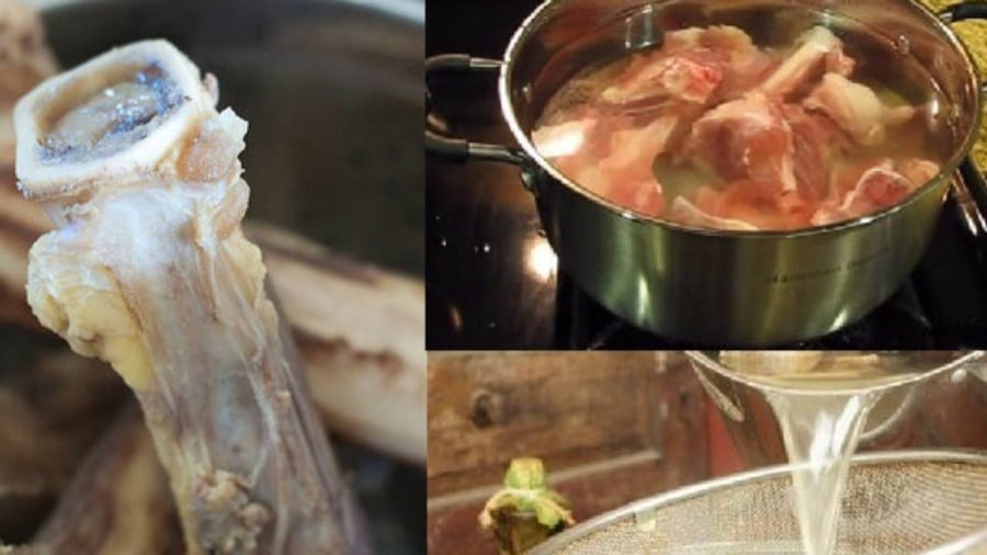 Khi xương đã nhừ, lấy ra và lọc kỹ lấy nước dùng, ta sẽ có một nồi nước hầm xương chất lượng cao, sẵn sàng làm nền cho các món ăn đặc sắc.