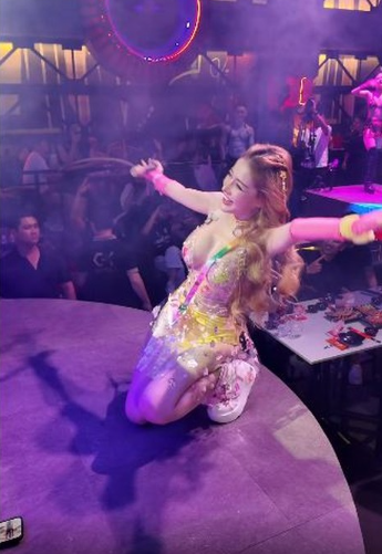 Cô nàng thậm chí còn không diện nội y ở phần trên, trang phục trong suốt bên ngoài không thể che được đường cong cơ thể. Cô nàng khoe trọn vòng 1 ngồn ngộn.
