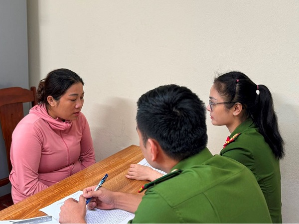 Phạm Thị Hằng tại cơ quan chức năng (Ảnh: Lao Động)