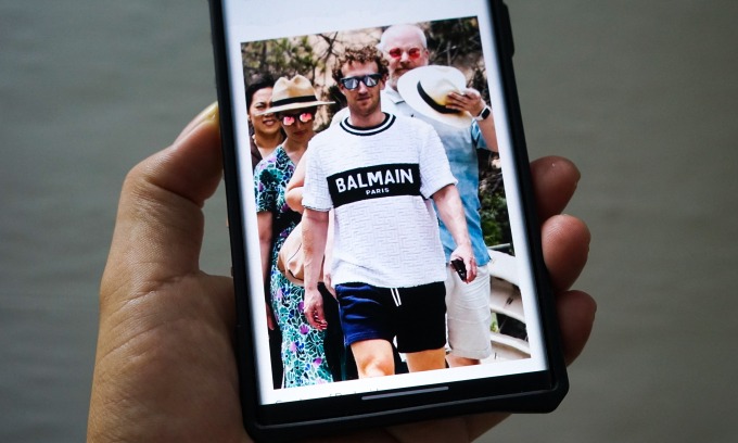 Hình ảnh Zuckerberg với thời trang mới trên một chiếc smartphone. Ảnh: Backgrid/Bảo Lâm