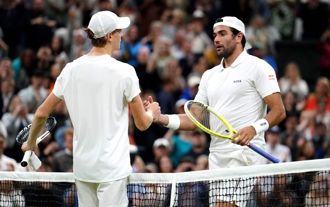 Hạt giống số một Jannik Sinner hạ đồng hương Italy, Matteo Berrettini 7-6(3), 7-6(4), 2-6, 7-6(4) ở vòng hai Wimbledon hôm 3/7.