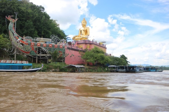 Tại bến thuyền Phra Chiang Saen Sii Pandin, tượng Phật dát vàng khổng lồ cao 15 m tọa trên bệ có hình chiếc thuyền là điểm dừng đầu tiên. Du khách có thể thuê thuyền đuôi dài để đi qua sông cập bờ Thái Lan, Lào và Myanmar hoặc thực hiện một chuyến đi dài hơn đến trung tâm huyện biên giới Chiang Saen và xa hơn nữa.