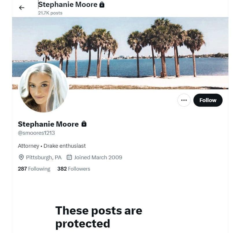 Sau khi tin tức này xì ra từ nhà báo Laura Loomer. Chị Stephanie Moore lật đật khoá tài khoản X.