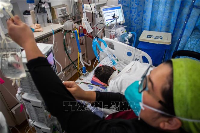 Điều trị cho bệnh nhân nhiễm COVID-19 tại bệnh viện ở Tarzana, California, Mỹ. Ảnh tư liệu: AFP/TTXVN
