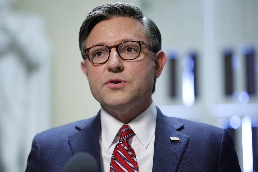Chủ tịch Hạ viện Mỹ Mike Johnson trả lời phóng viên tại tòa nhà quốc hội ngày 28/6. Ảnh: AFP