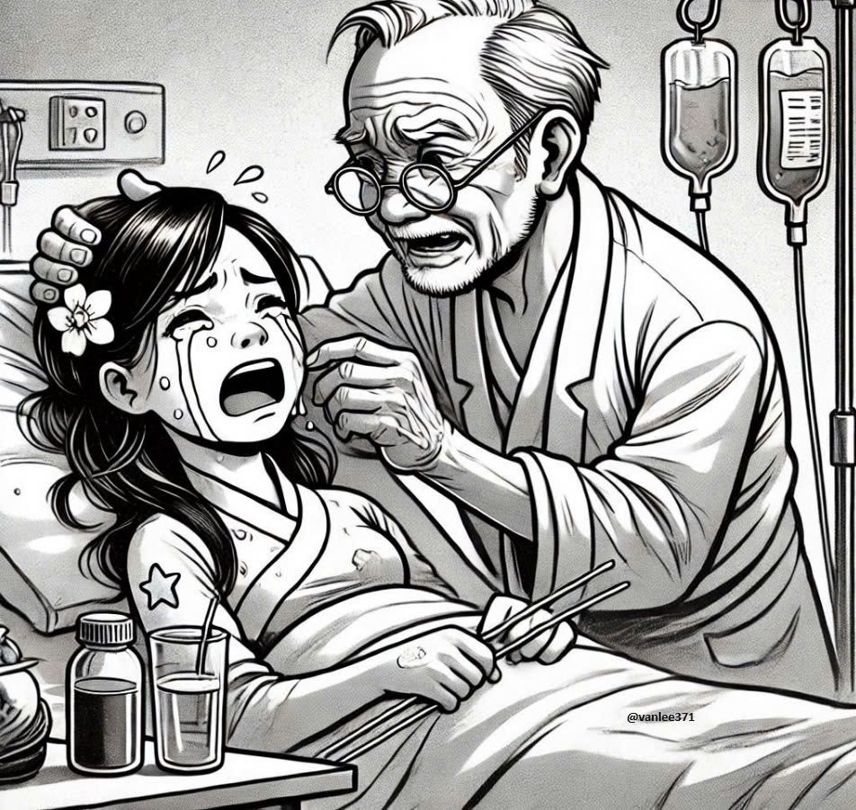 Phẫu thuật xong, tại phòng bệnh chỉ còn lại bố cô gái đang chăm sóc cô.
