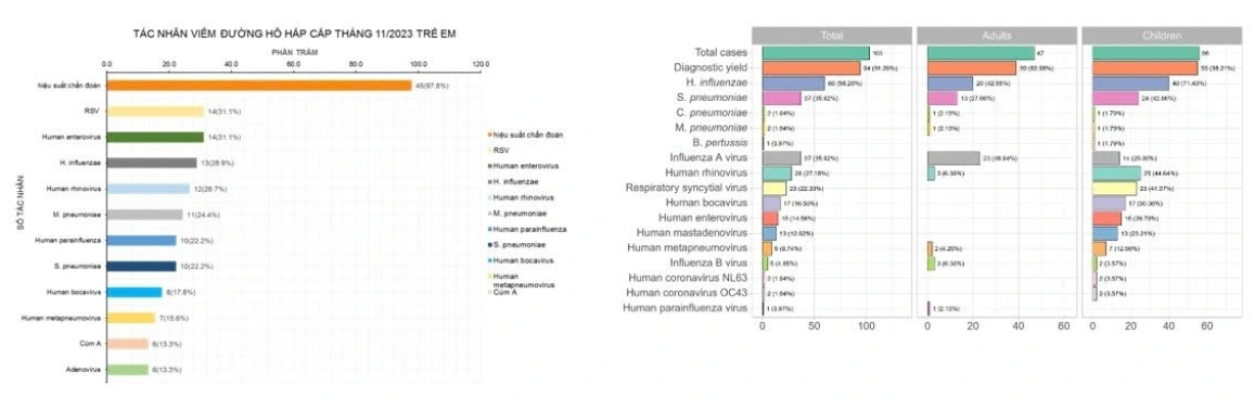 Trong đợt bùng phát viêm hô hấp trẻ em vào cuối năm 2023 tại TPHCM, kết quả giám sát cũng ghi nhận tình trạng đa dạng tác nhân virus thường gặp. Trong đó, tác nhân HMPV cũng được phát hiện với tỉ lệ 15%.