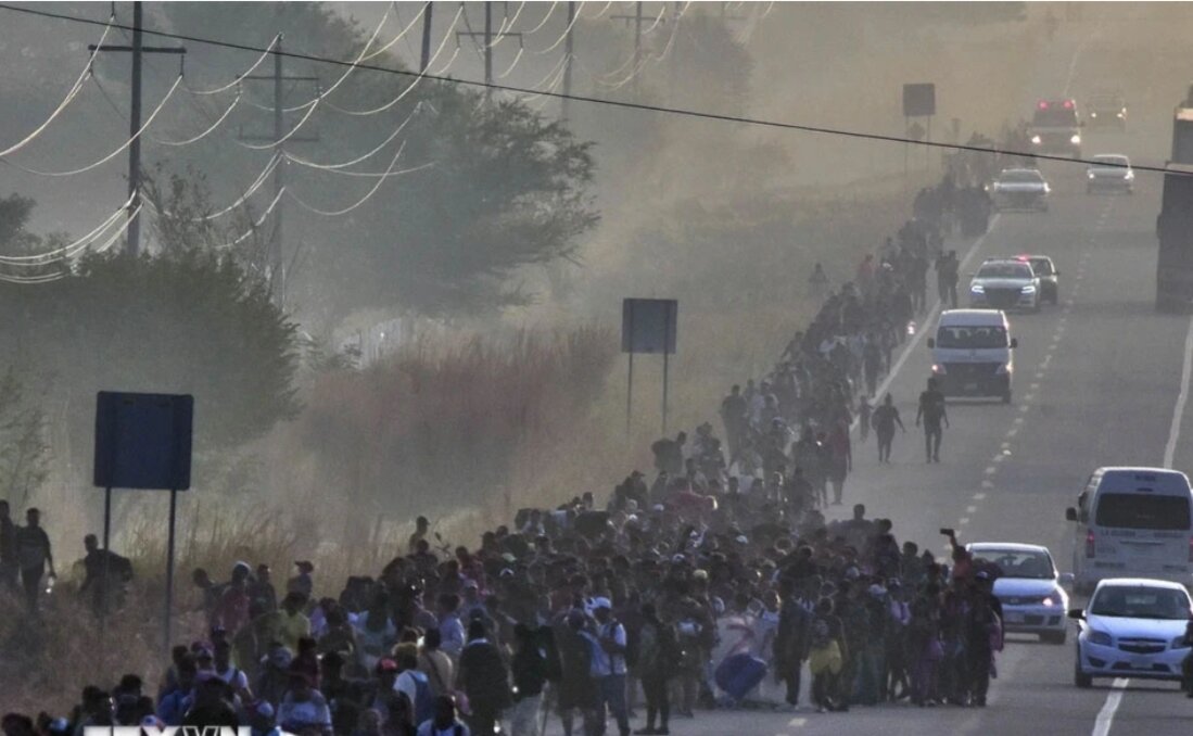 Người di cư trong hành trình tới Mỹ, tại khu vực Arriaga, bang Chiapas, Mexico, ngày 8/1/2024. (Ảnh: AFP/TTXVN)