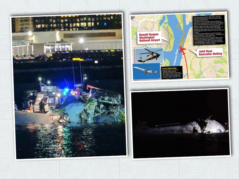 Vụ va chạm giữa không trung thảm khốc trên sông Potomac: Chuyến bay AA-5342 của PSA Airlines và vụ tai nạn của trực thăng Black Hawk của Quân đội Một vụ va chạm giữa không trung thảm khốc đã xảy ra tối nay trên sông Potomac gần Sân bay quốc gia Reagan ở Washington, DC. Chuyến bay AA-5342 của American Airlines, do PSA Airlines khai thác (CRJ-700, số hiệu N709PS) từ Wichita đến DC, chở 60 hành khách và 4 phi hành đoàn, đang tiếp cận đường băng 33 thì va chạm với một chiếc trực thăng Sikorsky UH-60 Black Hawk của Quân đội Hoa Kỳ từ Fort Belvoir, chở 3 thành viên phi hành đoàn. Cả hai máy bay đều rơi xuống sông vào khoảng 20:46L. Không có người sống sót nào được báo cáo sau hơn 4 giờ hoạt động tìm kiếm trong điều kiện mùa đông khắc nghiệt. FAA và NTSB đang điều tra, với việc sân bay đóng cửa cho đến ít nhất là 05:00L ngày 31 tháng 1. Hoạt động ứng phó khẩn cấp có sự tham gia của hơn 300 nhân viên.