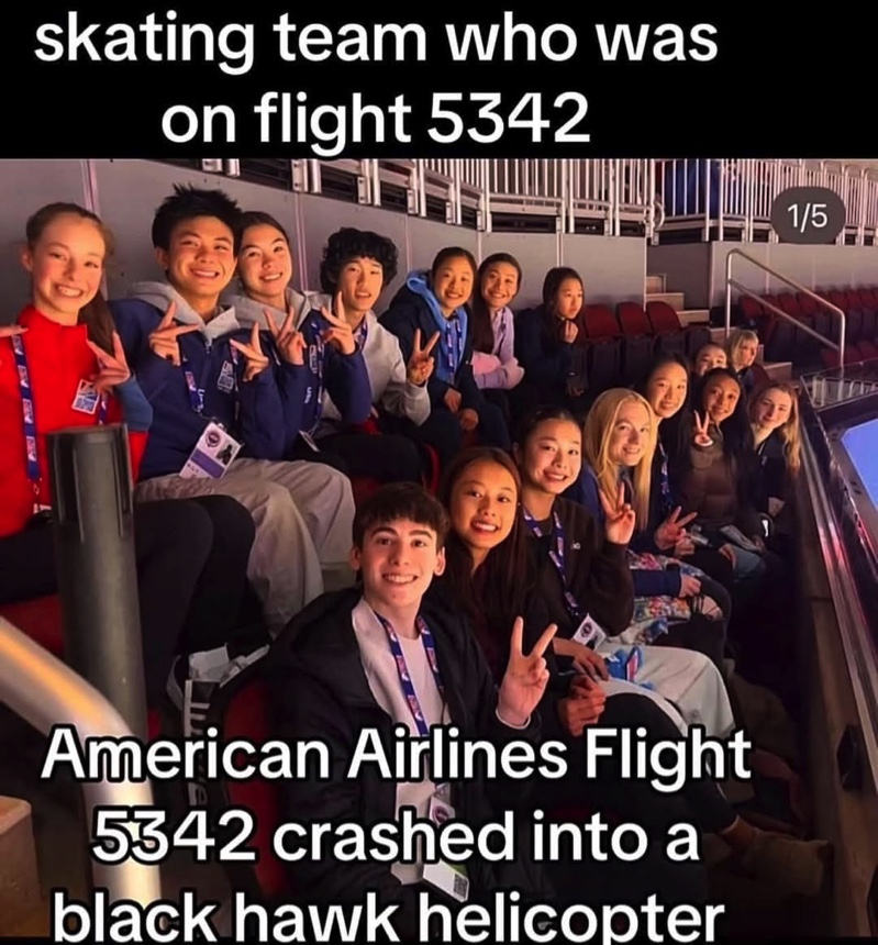 Đội trượt băng nghệ thuật Hoa Kỳ đã chính thức xác nhận rằng một số vận động viên trượt băng, huấn luyện viên và thành viên gia đình đã có mặt trên chuyến bay PSA Airlines Flight 5342 khi máy bay gặp nạn thảm khốc gần Sân bay quốc gia Ronald Reagan Washington.