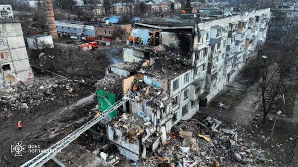 Tại Poltava, miền trung Ukraina, công tác tìm kiếm các nạn nhân vẫn tiếp tục trong các đống đổ nát của một tòa nhà dân cư bị trúng tên lửa Nga. Chín người trong đó có trẻ sơ sinh đã thiệt mạng, và hàng chục người khác bị thương. Bốn trăm nhân viên cứu hộ đã có mặt tại chỗ. Đối với Andriy Yermak, chánh văn phòng tổng thống, điều đó cho thấy là Matxcơva, xin trích, "không có một sự tôn trọng nào đối với bất kỳ lãnh đạo thế giới hay quốc gia nào".
