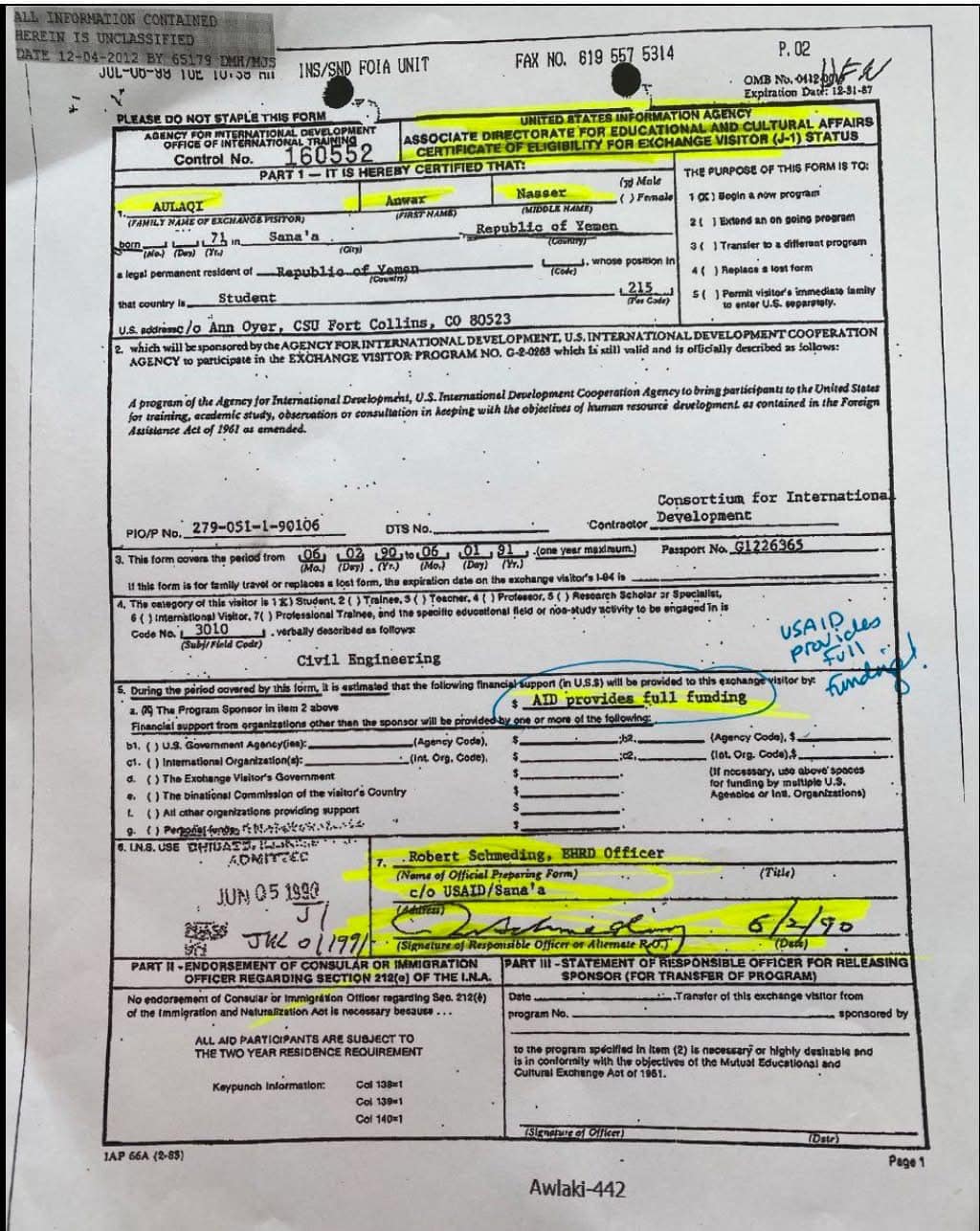 Anwar Aulaqi, trùm khủng bố cấp cao của al Qaeda, đă được USAID chi trả toàn bộ học phí đại học. Ông ta đă bị tiêu diệt trong một cuộc tấn công bằng máy bay không người lái của CIA vào năm 2011.