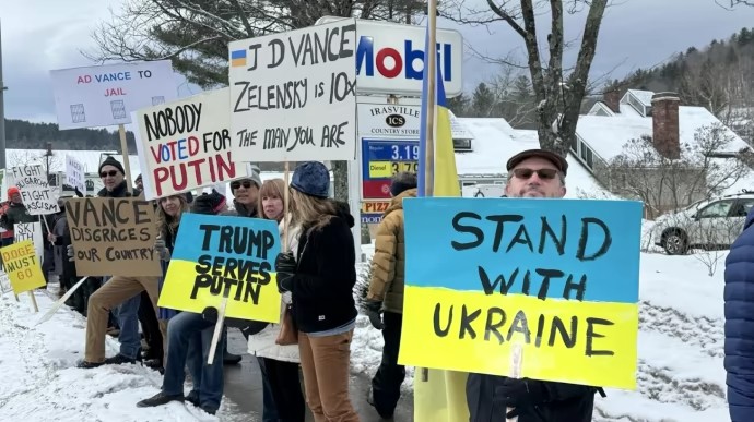 Một số người biểu tình cho biết, họ cảm thấy không hài lòng khi các nhà lãnh đạo Mỹ to tiếng với ông Zelensky ở Nhà Trắng.